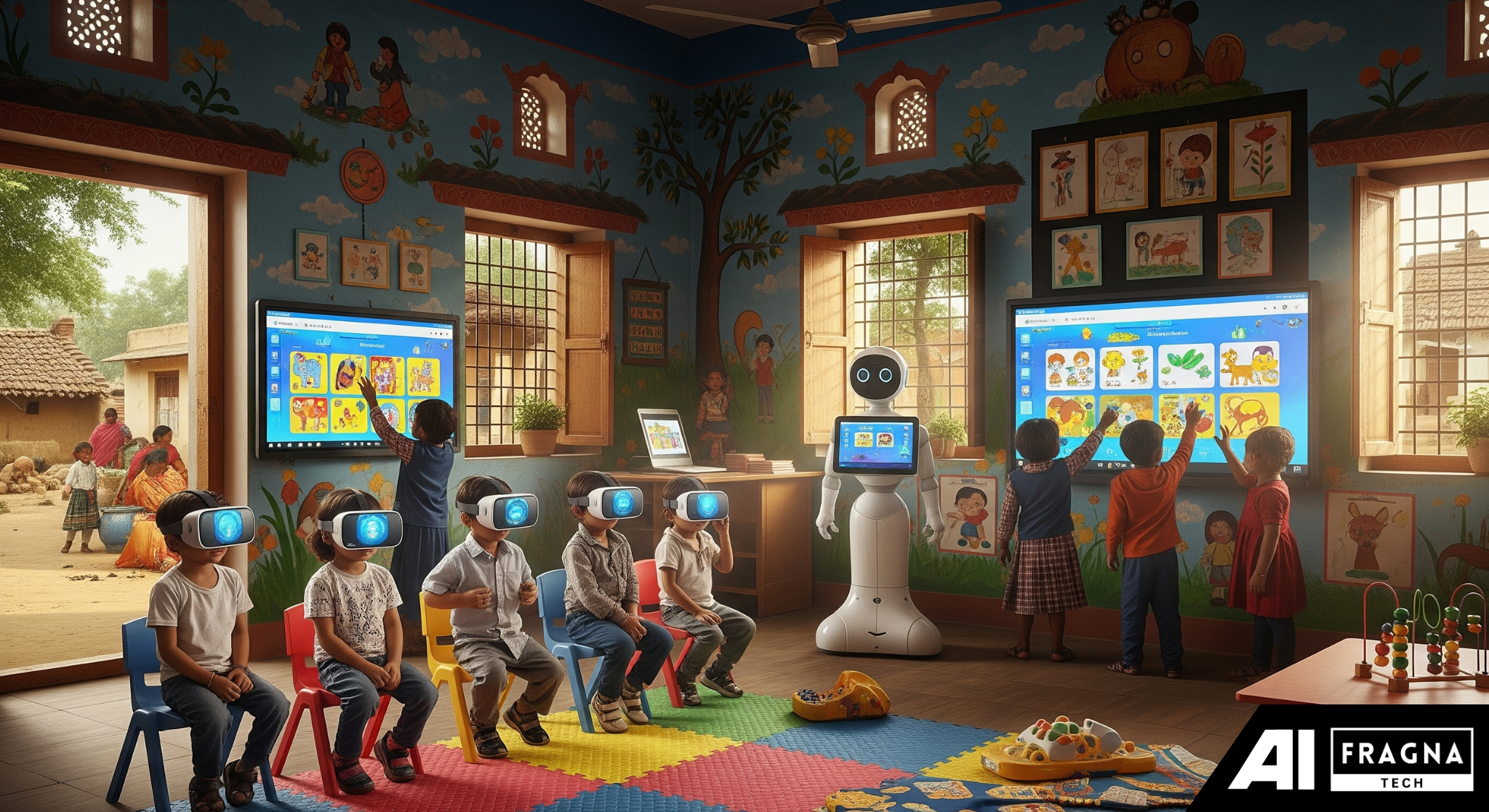 This isn’t just about adding technology – it’s about creating equal opportunities. Children aged 2-6 now learn through virtual reality headsets from Meta, AI-enabled interactive smart boards, tablets, and gamified learning platforms. The traditional chalk-and-slate method has been replaced with immersive digital experiences.