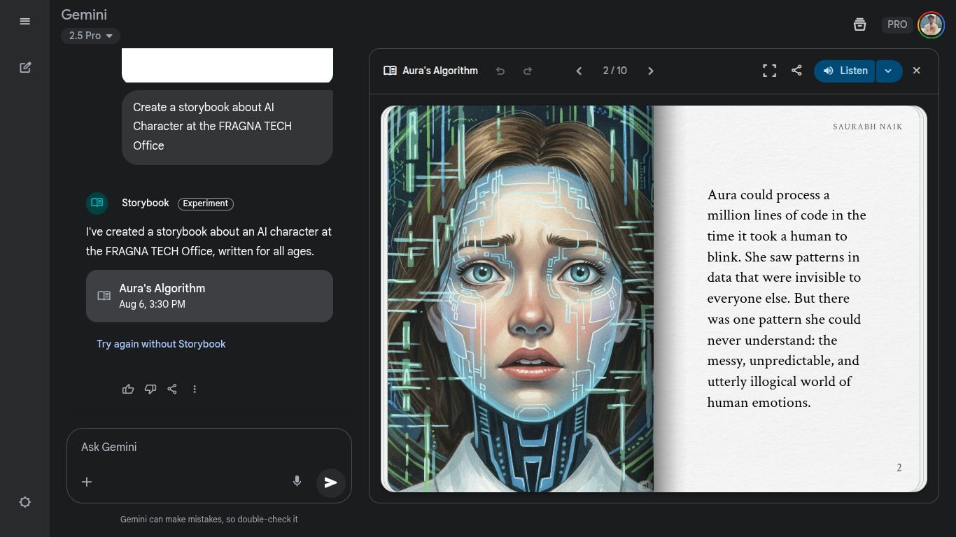 The groundbreaking “Storybook” feature transforms simple text prompts into complete 10-page illustrated narratives with professional audio narration. Users simply describe their desired story concept, and Gemini’s advanced AI generates unique tales featuring custom artwork and voice narration options.